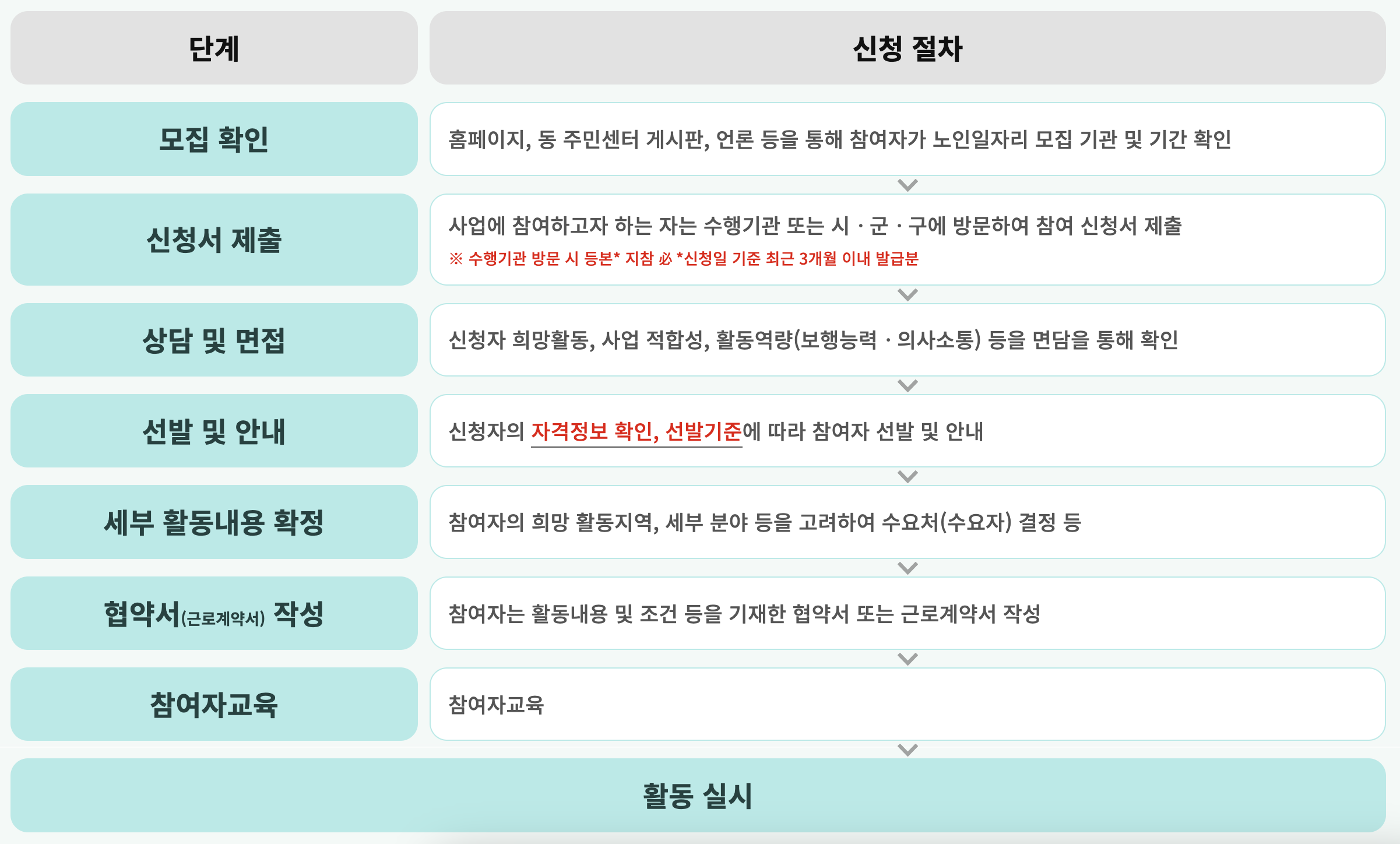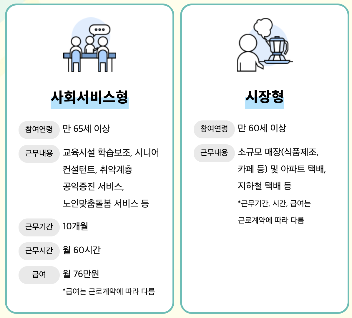 이상 노인일자리 신청자격 / 신청방법 / 일자리유형에 대해