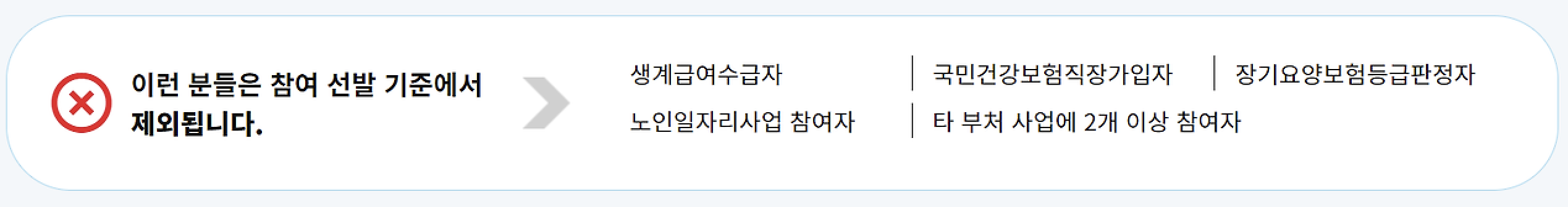 📌 노인독신가구 이거나 경제무능력자와 동거 중인 노인 우선선발!