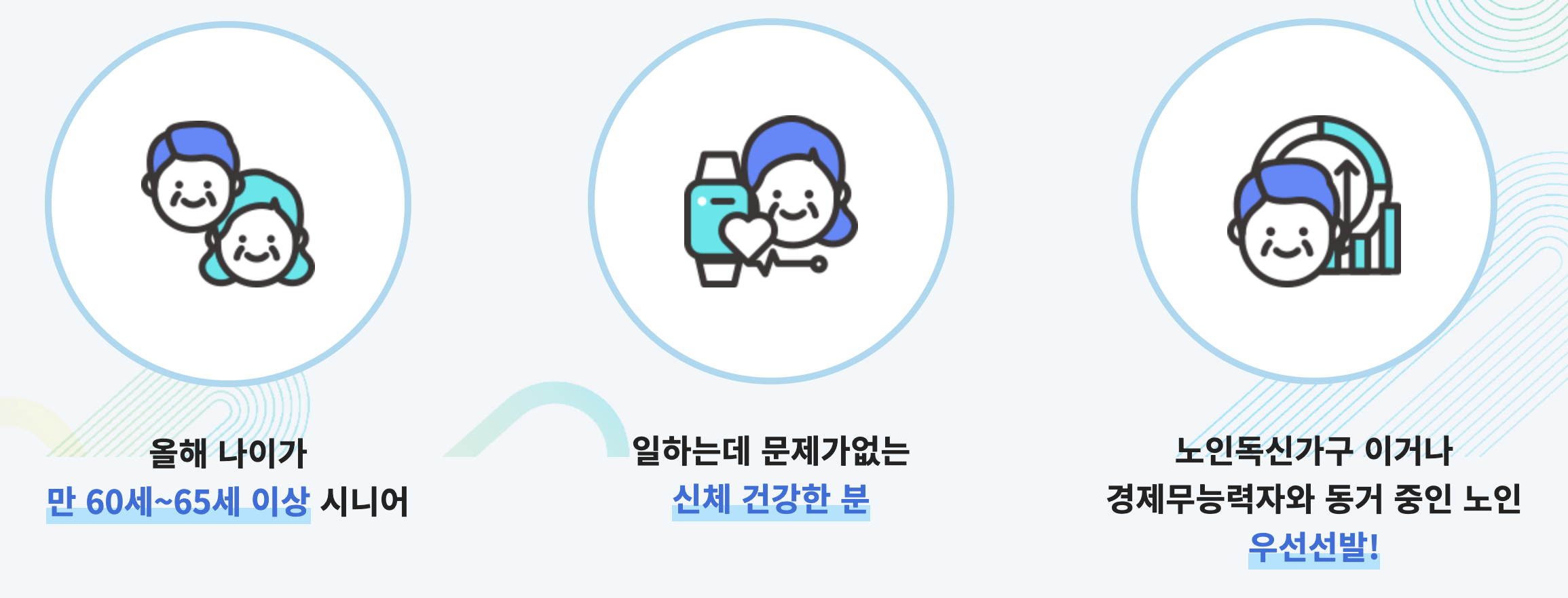 📌 나이 : 올해 나이가 만 60세~ 65세이상 시니어