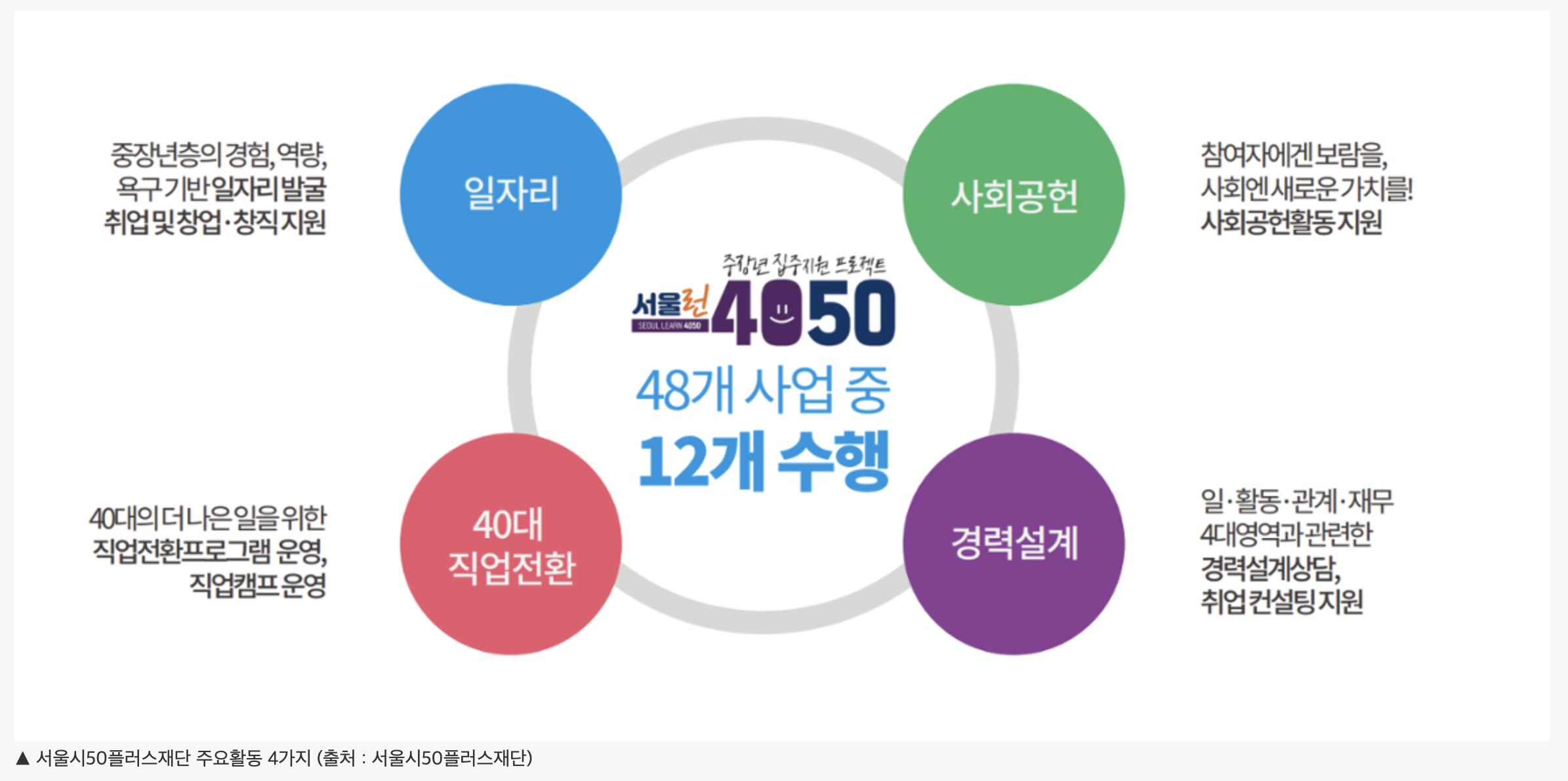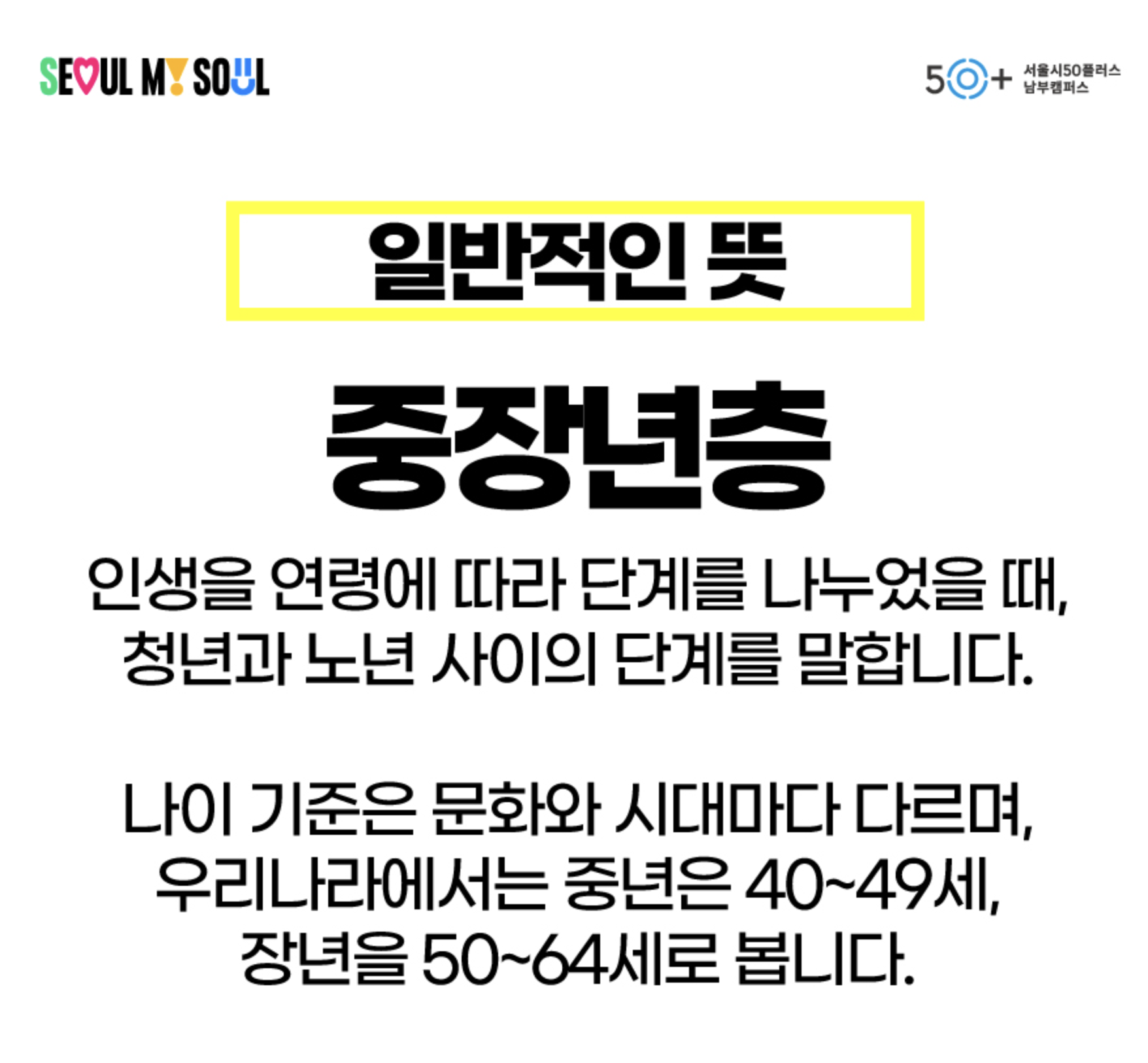개인의 생애주기에서 아주 중요한 전환기에 해당하는 서울시 중장년 세대를 위해 오늘도 서울시50플러스재단은 당신과 함께합니다.