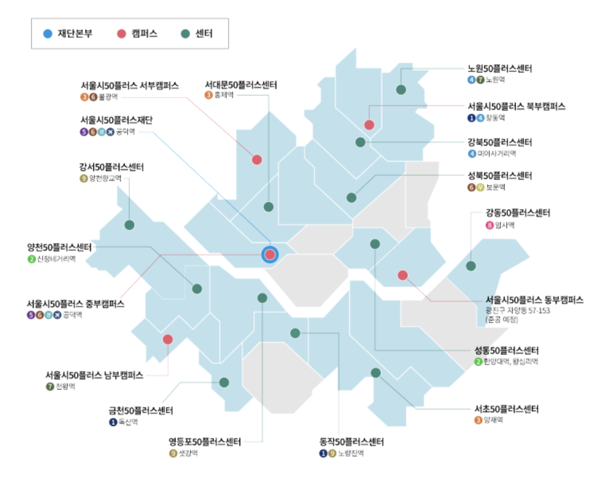 서울 50플러스 센터는 서울시에서 운영하는 중장년을 위한 복합문화공간입니다.